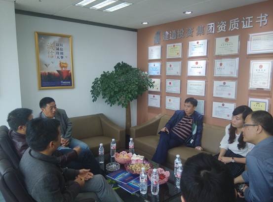 中午简单吃完午饭,董事长稍事休息就到了公司,先后会见了有意向合作的同行伙伴和部门领导。期间,董事长感谢各位对建通集团进入江西、云南市场的欢迎,感谢大家对建通品牌的认可,以及江西、云南人民的友好和热情,同客人的交流中,邓董事长向对方介绍“德建志远,业通人和”、“建通是我家,发展为大家”的企业核心理论以及“先做人后做事”的处世原则,恪守“以质量求信誉,以信誉促发展”的经营理念,用真诚去打动客户,用诚信去赢得市场!对方十分赞同邓董事长的意见和三亿网页版集团的经营理念,双方进行了坦诚的交流,气氛热烈。