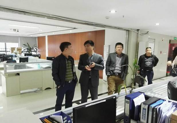 图一:千福田梁宇董事长、伍海生总经理陪同邓安杰董事长参观了千福田公司的办公环境