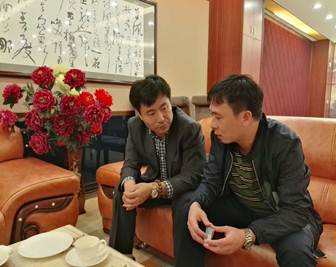 图二:邓安杰董事长、梁宇董事长进行友好交谈