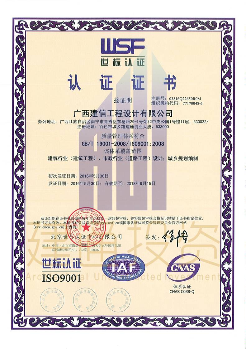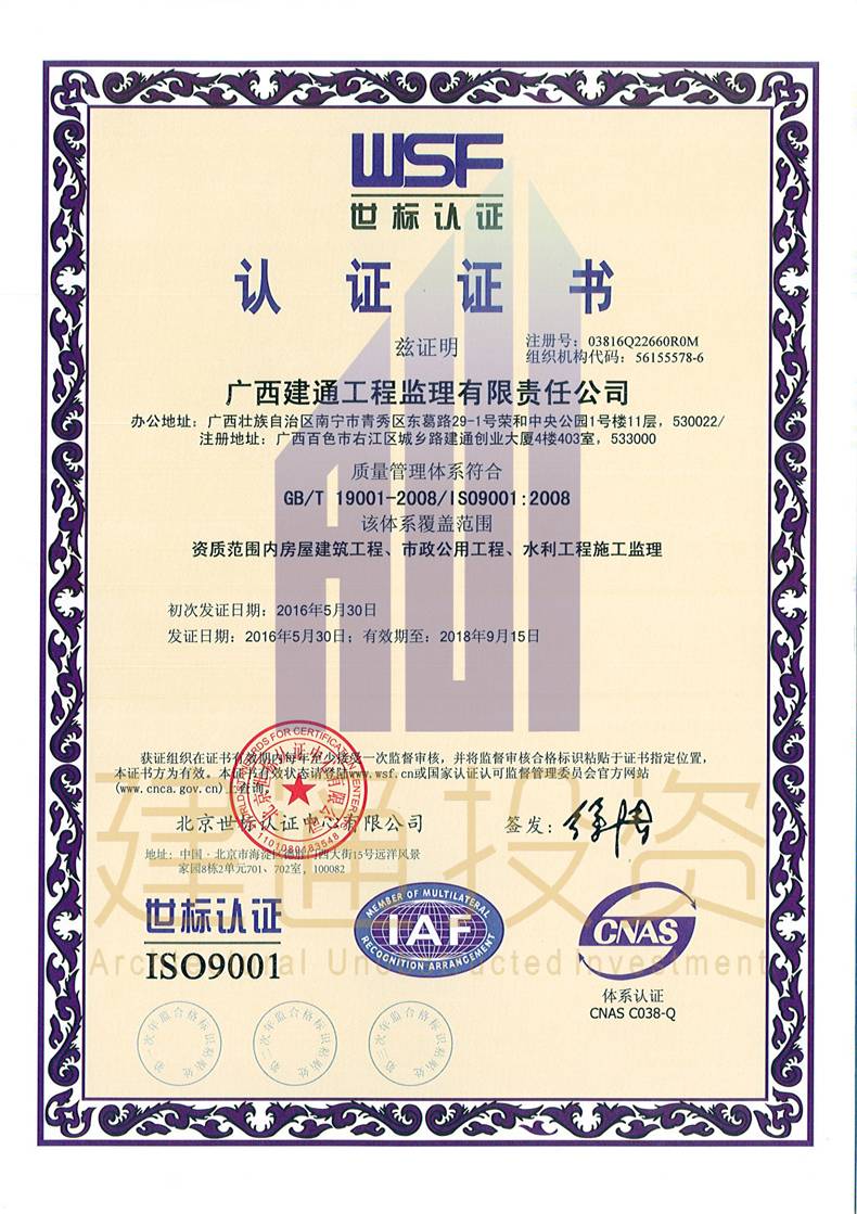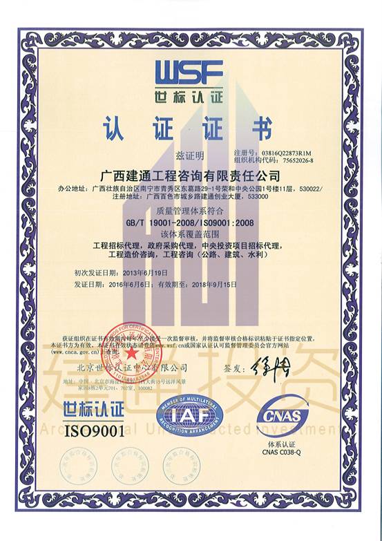 2013年6月,sanyi三亿(中国)率先引进了ISO9001国际质量管理体系,三年以来,我公司秉承IOS国际质量管理体系中“质量管理精益求精、客户满意最终目标”的核心理念,求实创新、努力创建完善的质量管理体系,在公司管理经营上实现了一次又一次的精彩超越。此次集团建通咨询、建信设计、建通监理三家子公司同时引进ISO9001、ISO14001、OHSAST18001管理体系,让公司在原有的质量管理体系的基础上更进一步完善,更加国际化、科学化、合理化、成熟化、规范化,将“质量管理、客户服务由我做起”的良好意识植入每一位员工的心中,开创了建通集团质量管理和服务意识的新篇章,更为广大新老客户提供了国际标准化的、更为专业的服务。ISO9001、ISO14001、OHSAST18001三大体系的成功引进,是对公司质量体系管理、环境体系管理、员工职业健康安全管理工作的高度肯定,是对公司各项管理工作规范化、标准化的全面检测,是对公司持续稳定健康发展的重要保证。对不断提高管理水平、员工环保意识以及提高公司市场竞争力有很大的促进作用,同时也充分表明建筑行业相关领域及社会各界对我集团信誉、服务、品质等各个环节的高度认可。同时也要求我们进一步找出不足的地方,将持续改进的工作原则一直贯彻下去,努力将公司的各项管理水平推到一个又一个新的高度。