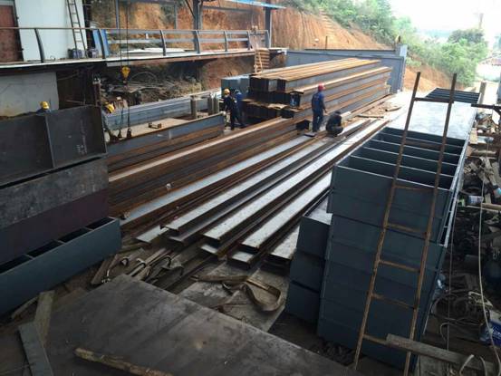 2016年6月15日,在公司领导陆虹任总经理的部署下,由组长黄坚,组员唐磊、劳正彬等几位同事成立的桩基配重块、钢梁制作工作实施小组到现场指导作业,炎热的天气阻挡不住工人们热火朝天的工作热情,现场大约需要制作1700多组配重块,规格为:1.5米*1米*0.8米,理论重量达3.85Kg/m³,目前配重块现已完成480组。