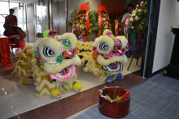 开业剪彩现场雄狮腾跃,锣鼓喧天