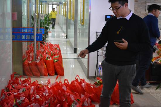 为感谢集团全体员工一年来的努力付出,关心员工生活,让员工欢度中华民族的传统佳节,能够开开心心地过上一个欢乐、祥和的2017年春节,集团为每位员工发放了丰富的春节年货,给全体员工带来了新年的气息。集团在董事会秘书处的细致安排下,于2017年元月20日开始发放年货,年货为一桶10升的厨邦花生油和一份精美礼品。