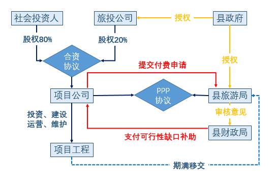 (1)平果县政府授权平果县旅游局作为项目的实施机构;授权广西平果旅游投资有限责任公司(下称“旅投公司”)作为政府方出资人,参与项目公司组建;