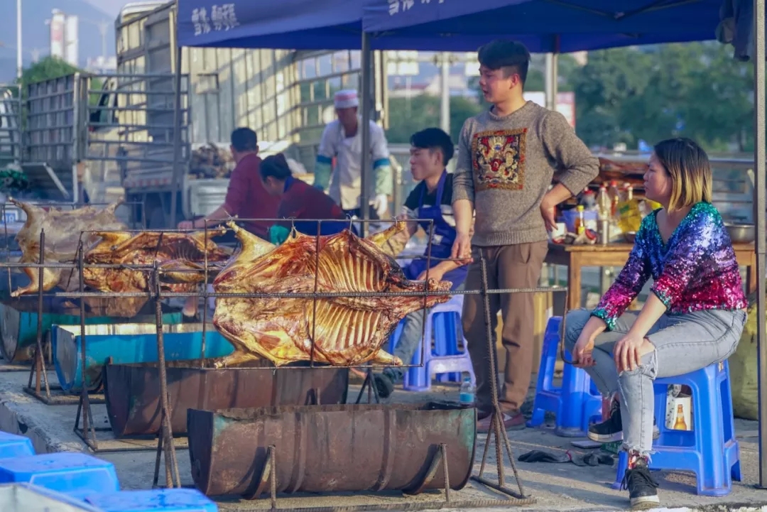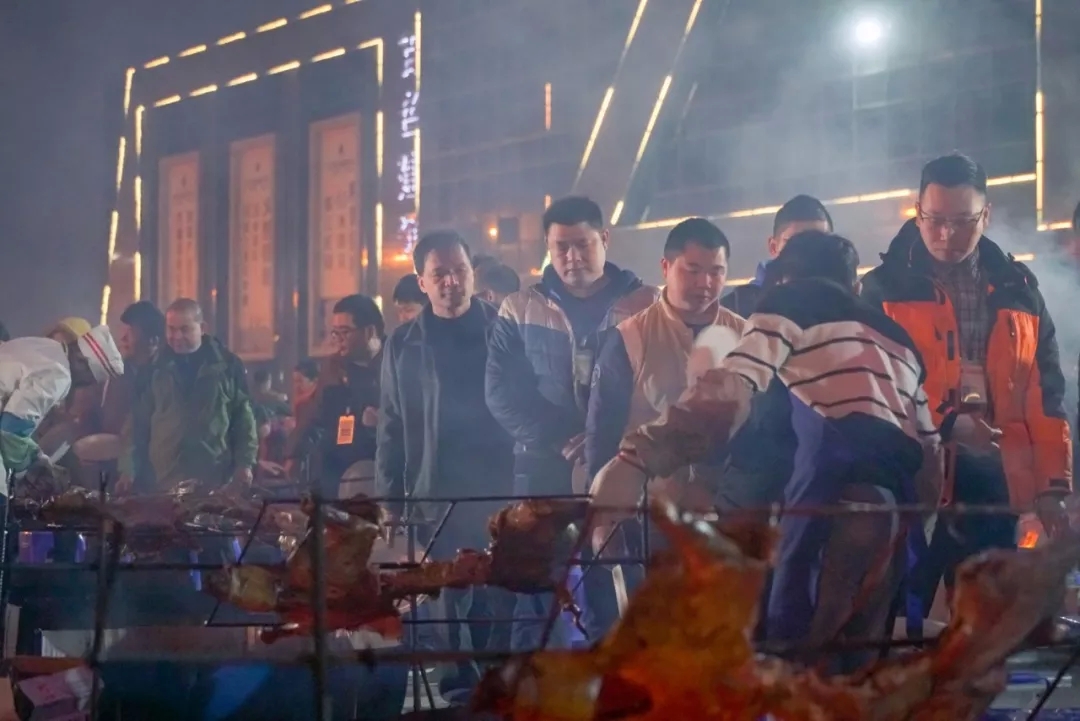 烤了一下午的10只全羊也闪亮登场,早已对它们垂涎三尺的同志,拿着碗盘排着队等待师傅切分那香喷喷、美滋滋的烤羊肉,配上啤酒就是大快朵颐,再顺带舀上一碗鲜美的羊肉汤粥回味无穷,放眼一望都是一副食得津津有味的模样。在品食美味的同时大家也不禁感叹,能与如此心系员工的企业同行,温暖深润心田。