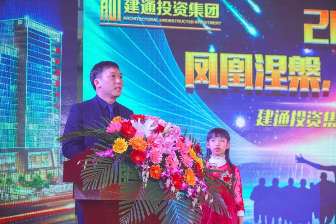 18时20分,集团邓安杰董事长热情洋溢的致辞拉开了2018年迎新春盛大庆典活动的序幕。邓安杰董事长说“对出席今晚宴会的领导、嘉宾表示热烈的欢迎,并且对这一年来为建通的发展事业付出辛勤劳动的同事们表示衷心的感谢。”