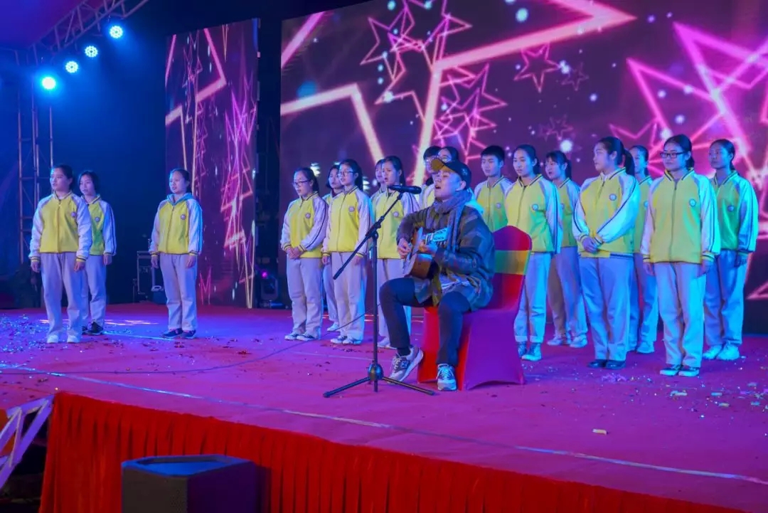 集团董事长邓安杰及集团副总裁李瑜、苏勇、李正琦、崔巨雄为建通助学班学生们送上新春祝福吉他弹唱《成都》惟妙惟肖,如同多情的游子,展示着集团热爱老区、扎根红土的思想境界。