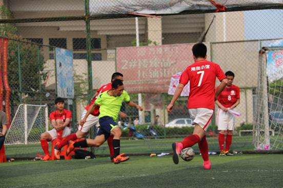 比赛进行半小时后中场休息,比分改为0:2,我队暂处劣势。此时,双方队员都已大汗淋漓,但没有一个球员喊累。队员们在休息空挡调整了战术和人员安排,我队在下半场采取“人盯人”策略,盼望扭转赛势。
