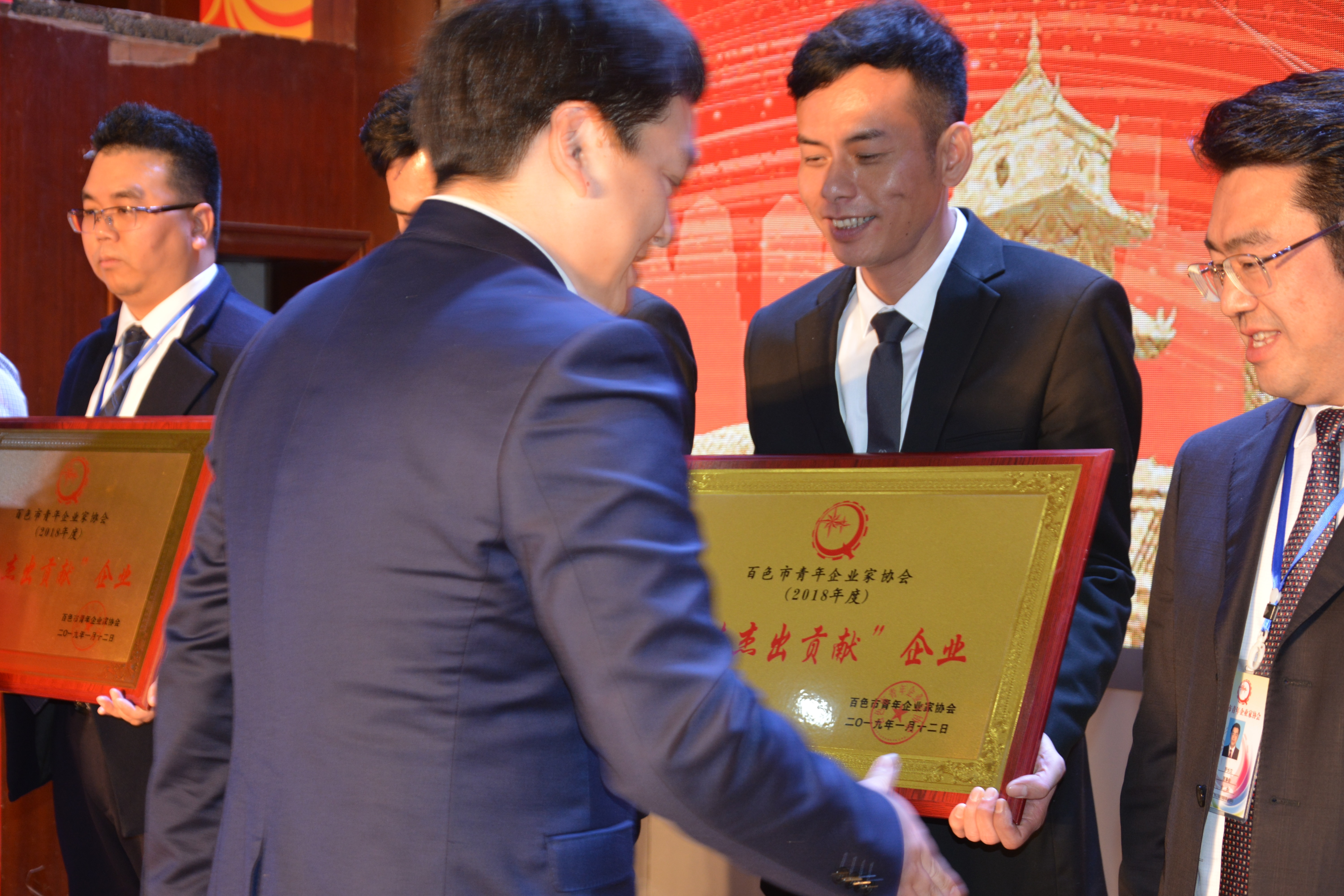 盛会上,百色市团市委书记白玛泽仁亲自为百色市青年企业家协会2018年度 “十佳杰出贡献”会员企业颁奖,三亿网页版集团副董事长黄树威先生代表集团获此殊荣,倍感荣幸。集团将一如既往秉持“建通是我家,发展为大家”的集团核心价值观,保持与青企协会的密切交流,时刻关注红城经济事业发展,齐心协力推动百色城市化进程。
