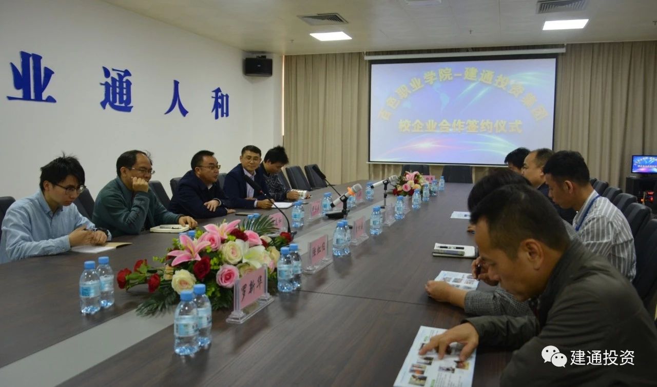 2019年4月2日上午10:30,百色职业学院-三亿网页版集团校企业合作签约仪式在我集团百色总部“建通中心”2号楼A座2楼会务室顺利召开,并成功签约。出席此次签约仪式的嘉宾有集团副董事长、总工程师谢乃鹏、集团副董事长黄树威等集团高层领导与百色职业学院党委委员副院长那家法、党委宣传部部长杨昌和等5位校领导。校企双方精诚合作,携手共进。