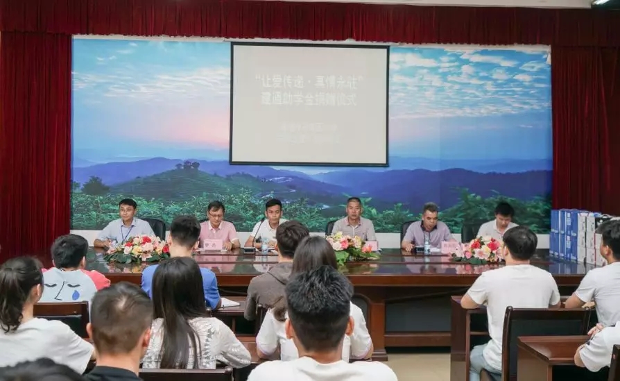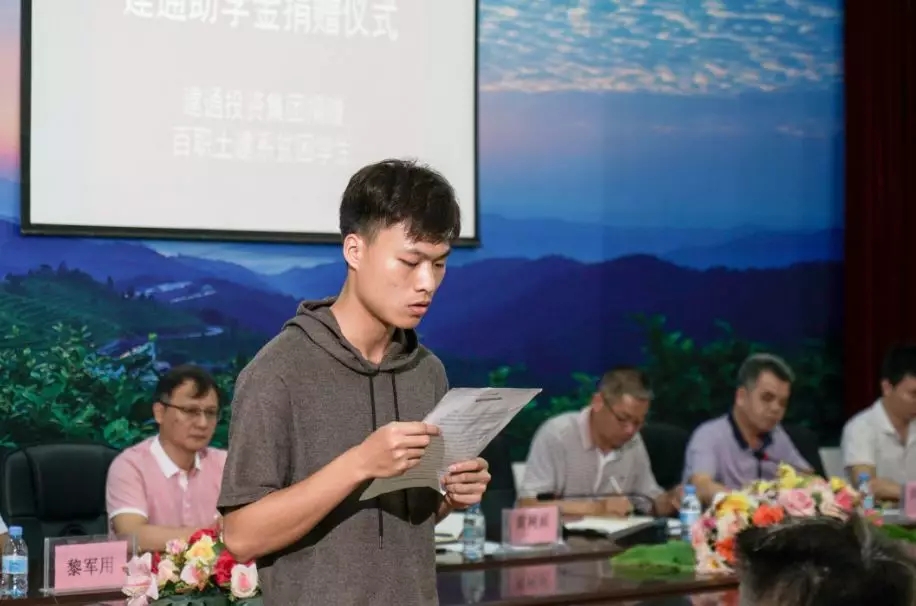 2019年05月29日下午16:00,在百色职业学院综合教学楼一楼会议室举行“让爱传递·真情永驻”建通助学金捐赠仪式,三亿网页版集团副董事长黄树威、副总裁罗杰参加了此次仪式,百色职业学院党委副书记岑俊、党委委员农乐设、土木建筑工程系党支部书记黎军用、土木建筑工程系副主任李建国等学校领导及部分土木建筑工程系同学出席了仪式,仪式由百色职业学院党委委员农乐设主持。