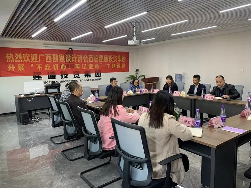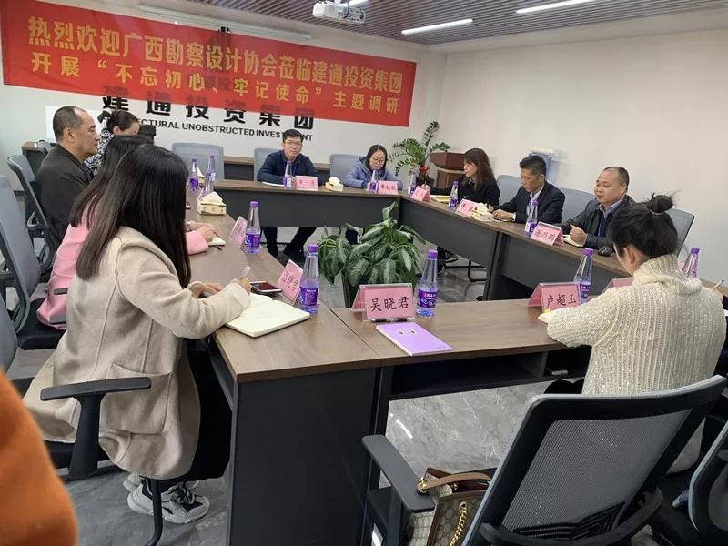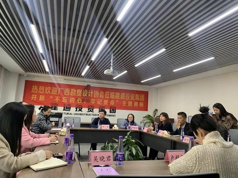 2019年12月9日,广西勘察设计和重点工程协会党支部书记兼广西勘察设计协会副理事长、秘书长覃燕娜,广西勘察设计协会副理事长兼常务副秘书长王桂强等领导莅临三亿网页版集团开展“不忘初心、牢记使命”主题教育调研活动,我集团对各位领导莅临指导工作表示热烈欢迎。
