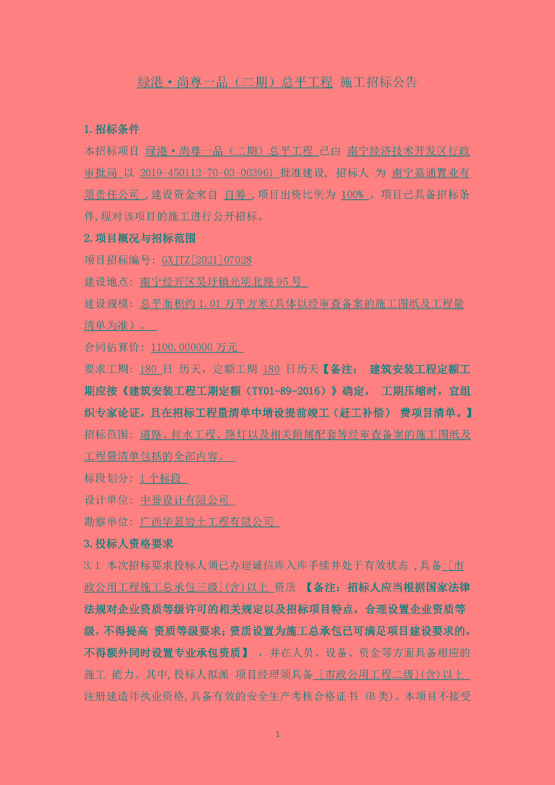 绿港·尚尊一品(二期)总平工程施工招标公告
