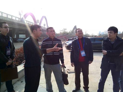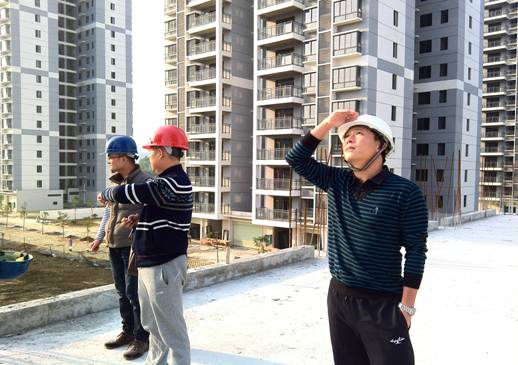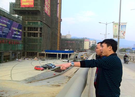 参观结束后,开业仪式告一段落。邓董事长心系建通·时代广场项目的建设,在集团副总裁黄承理,房地产及营销策划部工作人员的陪同下,邓董事长首先对与建通时代广场接壤的市政府重点工程滨江大道的建设情况进行了实地查看。截至发稿时止,滨江大道已铺设完碎石基础,即将铺设水稳层。当邓董事长得知春节前滨江大道可完成沥青路面铺设后,十分高兴的指出:“滨江大道的建设是迎龙区的发展纽带和辐射源,它的建设将奠定迎龙区核心区域发展重心,极大的推动楼盘的商业价值和品牌价值,与其他项目对比,更加凸显了我们项目的核心区位优势、交通优势与配套优势,因此对我们的楼盘具有非常重大的意义!”随后,邓董事长来到1#楼广场前察看外墙装修及电梯厅装修情况。截至发稿时止,1#楼外墙装修玻璃幕墙骨架已搭设完毕,正在安装部分玻璃。邓董事长走进跟前察看工人安装玻璃工作,对安装的进度效果表示满意,他指出:“按照目标计划,1#楼将在春节前外墙要首先装修完毕,届时将把广场的整体效果体现出来,为即将在广场举办的重要活动创造良好的景观条件。”行程最后,邓董事长还对时代广场的其他栋号的建设情况一一进行了察看,并对下一步的施工作业的开展作出了重要的部署。